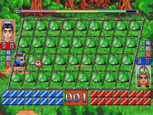 以猜拳决定先后手,即各子均一次走一步,翻开暗藏的棋子也算一步,大小则依将士象车马炮兵排列,但炮需隔子吃子。游戏中可两人对下,亦可单人采用闯关的方式进行,玩者必须连闯15关获得最后的胜利。而游戏中提供了不少秘技与道具可使用,增加了不少趣味,只可惜对弈过程无法随时存档,比较不方便些。