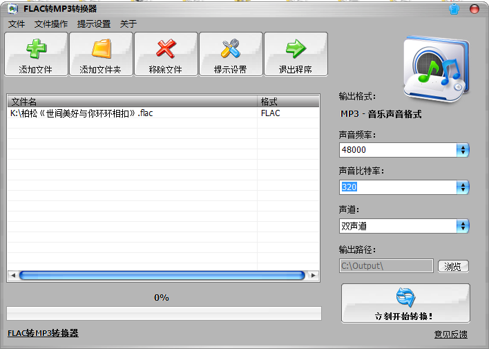 不仅仅支持FLAC转MP3,还可以支持APE转MP3,MP3最高率支持320KBPS